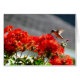 Hummingvogel über roten Geranien