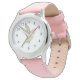 Kinderuhr aus Edelstahl mit rosa Lederarmband