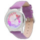 Uhr, Kinderuhr aus Edelstahluhr mit lila Lederarmband