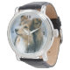 Uhr, Vintage Männeruhr mit schwarzem Lederarmband