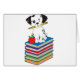 Ein dalmatinischer Welpe mit einem Bleistift in seinem Mund sitzt auf einem Stapel Büchern. Fertigen Sie dieses Produkt mit einem Namen oder einer Mitteilung besonders an, um sie wirklich einzigartig zu machen