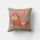 Ein Spaß und hübscher ein Tag des Valentines pillow Eigenschaften ein weißer und brauner Ginghamhintergrund mit einem niedlichen Hund in einer rosa und korallenroten Baseballmütze, in einem Rot punktierten Mantel mit rosa Herzen, in einem Herzballon mit einem Knochen und in einem winged Herzen, die Sie mit einem Namen personifizieren können!
