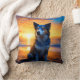 Ein Hund sitzt bei Sonnenuntergang ai art am Strand. Hunde thematisches Kissen.