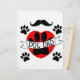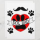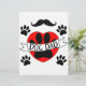 Eine Hundepete druckt in einem roten Herz mit Text auf einem Band. Originelles Design mit Pfoten und einem Schnurrbart. Eine Geschenkidee für Männer.