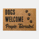 Herzlich willkommen bei dieser lustigen Tür! " Hunde willkommen , Menschen toleriert ". . Willkommen Doormat - Dog Paw Print Floor Mat. Rustikales natürliches Imitat mit schwarzem und schwarzem Design und Pfotendrucken. COPYRIGHT © 2020 Judy Burrows, Black Dog Art - Alle Rechte vorbehalten.