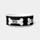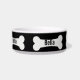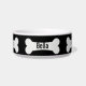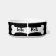 Weißer Hundeknochen mit dem Namen des Hundes auf schwarzem Hintergrund. Name ist bearbeitbar. Die Hintergrundfarbe kann geändert werden.