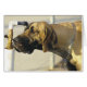 Ein lustiges Bild von Great Dane, das versucht, den Wasserhahn mit seinem Power des Geistes anzuschalten. Blank ohne Rand