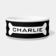Ein Hundeknochen mit Ihrem Haustiernamen und einem schwarzen Hintergrund, die geändert werden können