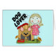 Ein entzückender Hundeliebhaberentwurf, der ein blondes behaartes Mädchen des Strichmännchens und ein großer ohriger Hund in einem Hundehaus auf Hundeliebhaber-T - Shirts, Bodysuits, Karten, Aufkleber, Taschentaschen, Magneten, keychains und anderes Hundeliebhaberkleid und -geschenke kennzeichnet.