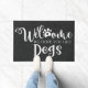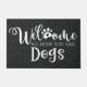 Textur von schwarzem Leinen und Wörtern: Willkommen, Wir hoffen, Sie mögen Hunde