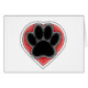 Ein Cartoon-Hundekuchen in einem roten Herz mit schwarzen Konturen. Originelles Design für Menschen, die Liebe Hunde.