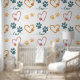Retro DOG PAW DRUCKEN und LIEBE HEARTS Wallpaper, entworfen für Ihre Heimtierecke und spezielle Bereich für Ihr Lieblings-Pelzbaby. Das Design zeigt Pfotendrucke mit Herzen in einem sich wiederholenden Muster und Retro-Farbpalette. Diese Tapete mit ihren Pfoten und Herzen wäre ideal für ein Zimmer, das für eine Hundemutter und einen Hundedad eingerichtet wurde.