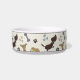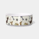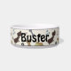 .Niedliche Hunde personalisierte Speiseschale mit einem sich wiederholenden Muster von Cartoon Knochen, Pfoten und Herzen. Editieren Sie einfach den Text für den Namen Ihres Tieres im einfachen Zazzle-Editor. Erhältlich in zwei Größen. Sehen Sie auch die Hundebox in dieser Leckerei.