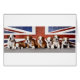 Bulldoggen Welpen im Hintergrund der Flagge der Union