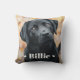 Das Kopfkissen des Haustieres mit dem Namen des Haustieres als weißes Foto, flankiert von zwei Herzen.