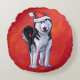 Husky in Weihnachtsmannmütze auf Rot Rundes Kissen