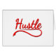 Das Wort "hustle" in rot mit Fallschatten in schwarz. Originelles Design.
