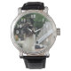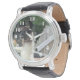 Uhr, Vintage Männeruhr mit schwarzem Lederarmband
