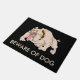 Warnung Ihre Gäste mit einer Haustür "Vorsicht vor dem Hund". Hier mit schwarzem Hintergrund dargestellt, können Sie die Hintergrundfarbe in die Farbe Ihrer Wahl ändern, indem Sie die Schaltfläche "Anpassen" auswählen und eine andere Hintergrundfarbe auswählen. Sie können den in der Entwurfsvorlage angezeigten Text auch bearbeiten, wenn Sie ihn wünschen.