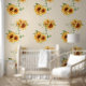 Diese Hütte-Tapete im schicken Stil zeichnet sich durch ein wunderschönes Blumenmuster aus Sonnenblumen aus. Die Sonnenblumen im Aquarell sind mit einem weichen, honiggelben Hintergrund gefliest. Es verleiht jedem Zimmer ein gemütliches, cottagecore-Ambiente.