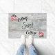 Diese Hütte Door Mat zeigt den Text Hütte Sweet Hütte auf einem Imitat weiß gekalkten Holzhintergrund mit hübsch rosa Rosen. Ideal für Ihre Hütte oder Vintage Dekoration.