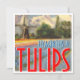 Hyacinths und Tulips Windmill feine Malerei Druck laden/ Karte ein. Farbenfrohe Frühlingsglasfelder und Windmühle mit individualisierbaren Texten "Hyacinths &" und "Tulips" impressionistisches Gemälde mit bedruckter quadratischer Kunstkarte.