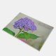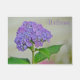 Diese Türmatte kennzeichnet eine Lavendel Hydrangeablüte mit dem Wortwillkommen. Copyright: Marjorie Tietjen