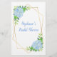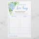 Dieses Brautparty ist ein Liebe-Liedspiel. Die Herberge spielt Ausschnitte von Liebe-Songs. Die Gäste schreiben den Namen und den Künstler auf die Karten. Für jede richtige Antwort werden Punkte gesammelt. Der Spieler mit den höchsten Punkten gewinnt einen Preis. Diese Karten haben ein Aquarellblau Hydrangea Blumendesign mit Imitaten goldenen Folie geometrischen Rahmen auf der Rückseite. Personalisieren Sie diese Karten mit dem Namen der Braut. Matching-Elemente verfügbar.