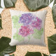 Dieses Sommerkissen im Freien, mit drei Hydrangeas in Rosa- und beruhigenden Lavendeltönen dekoriert, ist der ideale Akzent für Ihre Gartenmöbel.