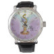 Uhr, Vintage Männeruhr mit schwarzem Lederarmband