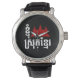 Uhr, Vintage Männeruhr mit schwarzem Lederarmband