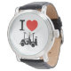 Uhr, Vintage Männeruhr mit schwarzem Lederarmband