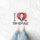 I Herz Trudeau. I Liebe Justin Trudeau. Mit einem roten kanadischen Ahornblatt. Kanadas liberaler Premierminister. Justin Gesicht getan als grafische Illustration und in einem Schmutz, beunruhigter Blick beendet.