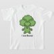 Hübsches Grün glücklich lächelnd Brokkoli. Unter ist eine Vorlage mit "I Liebe Broccoli" in schwarzem Text. Mit der Vorlage können Sie die Größe, die Farbe oder den Stil des Schriftartes ändern oder die Wörter auf Ihre eigene ändern.