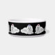 Ursprünglicher Kunstentwurf der flaumigen weißen maltesischen Hunde durch Künstler Carolyn McFann zwei des schnurrenden Katzen-Studios druckte auf einer Qualitäts-Hundefutterschüssel.