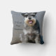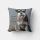 Ein schöner Miniatur-Schnauzer, der am nassen Sandstrand sitzt. Im Text steht "I Liebe Mini Schnauzers" vor und hinter dem Kissen.