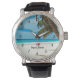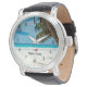 Uhr, Vintage Männeruhr mit schwarzem Lederarmband