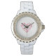 Eine wunderbare Damenuhr mit weißem Armband und grün-weiß-kariertem Ziffernblatt. Trägt sich ganz fabelhaft. Exzellenter Druck, sehr klare Farben. Schönes Design.