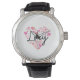 Uhr, Klassische Damenuhr mit schwarzen Lederarmband