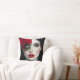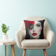 Pillow with a beautiful black and white illustration of a pretty woman with a red rose and red lipstick.