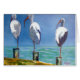 Drei Ibis, jedes stehend auf einem Bein, scheinen beim Abtasten des Wassers auf der Hut zu sein. Aus einem Ölgemälde von South Florida, Künstlerin Betty Laur. www.bettylaur.com
