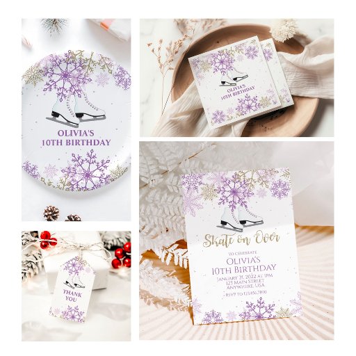 Ice Skaten Lila und Gold Snowflakes Geburtstag Einladung