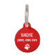 Weiße und rote Markierung für blinde Haustiere mit weißer Pfotenprint-Silhouette. Auf der einen Seite steht: "Ich bin blind" und auf der anderen Seite gibt es anpassbare Textbereiche für den Namen des Tieres und für eine Telefonnummer.