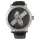 Uhr, Vintage Männeruhr mit schwarzem Lederarmband
