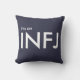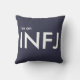 Ein dunkelblaues Kissen mit den anpassbaren Worten "I'm an INFJ". INFJ ist einer der 16 Persönlichkeitstypen im Myers-Briggs Type Indicator (MBTI), einer der weltweit am häufigsten verwendeten introspektiven Selbstmelde-Persönlichkeitstests auf der Grundlage der Carl Jung und Briggs Myers Typtheorie. INFJ steht für Introversion, Intuition, Gefühl und Judging.