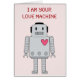 Dieses niedliche notecard kennzeichnet einen entzückenden Roboter mit rosa Herzen und Mitteilung "ich bin Ihre Liebemaschine". Sie ist süß perfekt, lustig und für ihn.