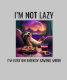 Wer sagt, Faulheit sei eine schlechte Sache? Dieses T - Shirt-Design zeichnet sich durch eine lustige Grafik und eine clevere Nachricht aus, die lautet: "I'm Not Lazy, I'm Just In Energy Rett Mode" in einem lässigen und relativierbaren Schriftart.