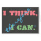 Hier ist Ihr nächstes Mantra oder Motto - "Ich denke, also kann ich", eine Neufassung des berühmten Descartes-Zitats: "Ich denke, also bin ich." Nach dem Versenden kann dieses positive Zitat in einem Rahmen oder auf einem Memo-Board weiterleben. Innen ist leer mit einem lachsfarbenen Hintergrund für Ihre Nachricht.