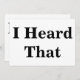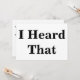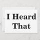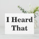 Standardweiße Karte mit "I Heard That" in einem großen, fett schwarzen Schriftart auf beiden Seiten.