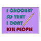 Eine Zunge im Backenslogan, ", das ich häkele, damit ich nicht Leute" mit einem Cartoonhäkelarbeithaken töte.